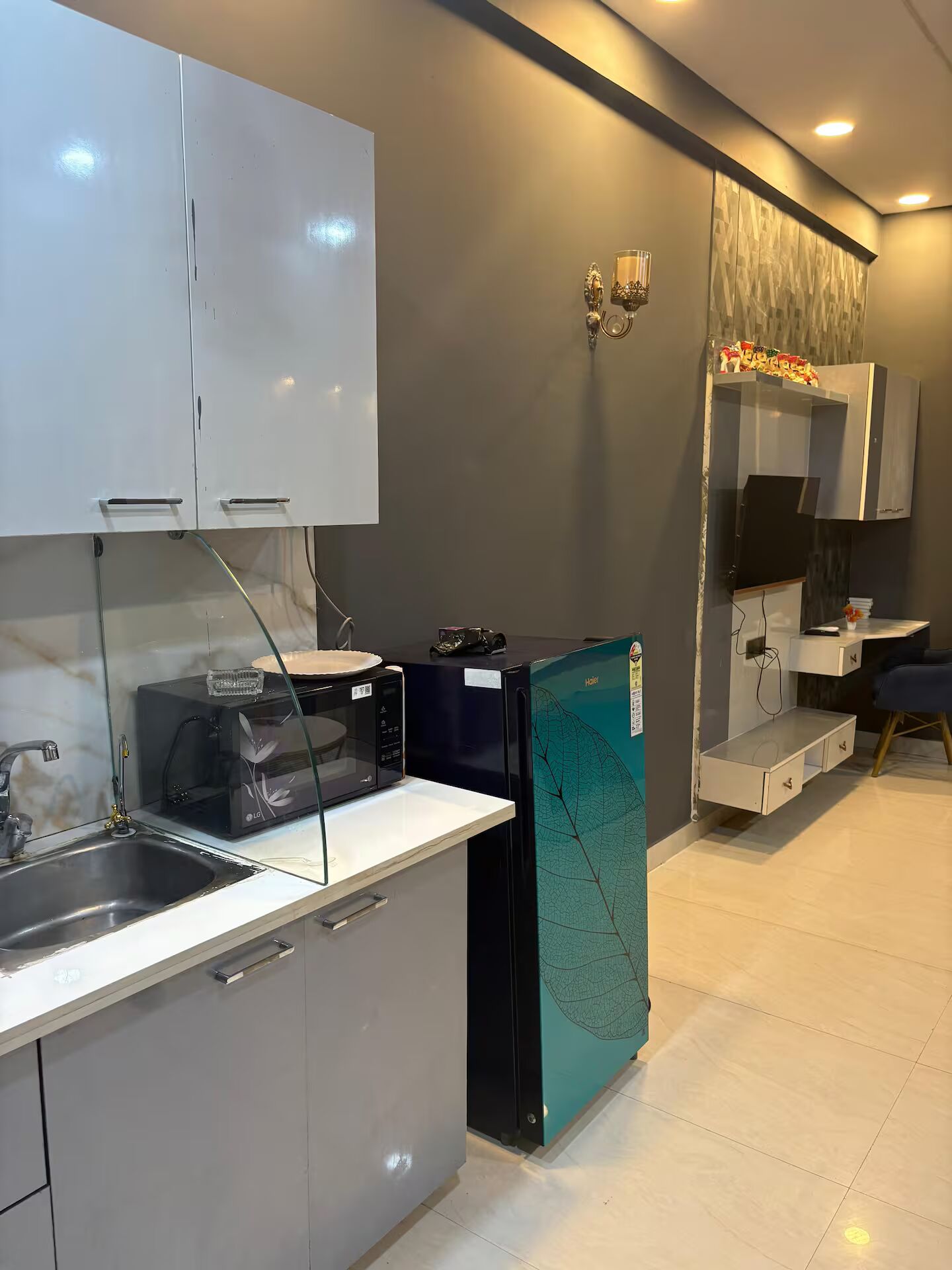 Fully furnished space with modern amenities and a well-equipped kitchen.​